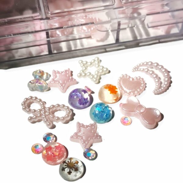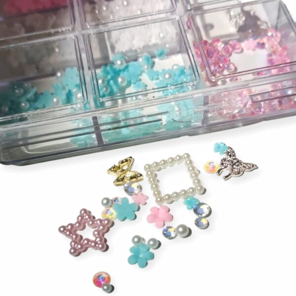 Decoración de uñas en cajita x 12 diseños surtidos rosa y celeste