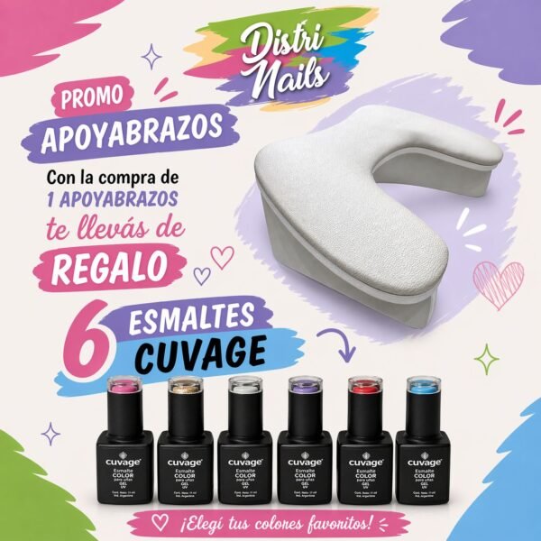 Promo apoyabrazos + 6 esmaltes cuvage a elección