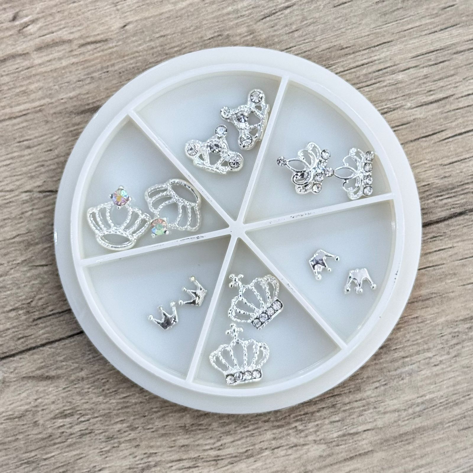 Caja de dijes plateados corona x 12