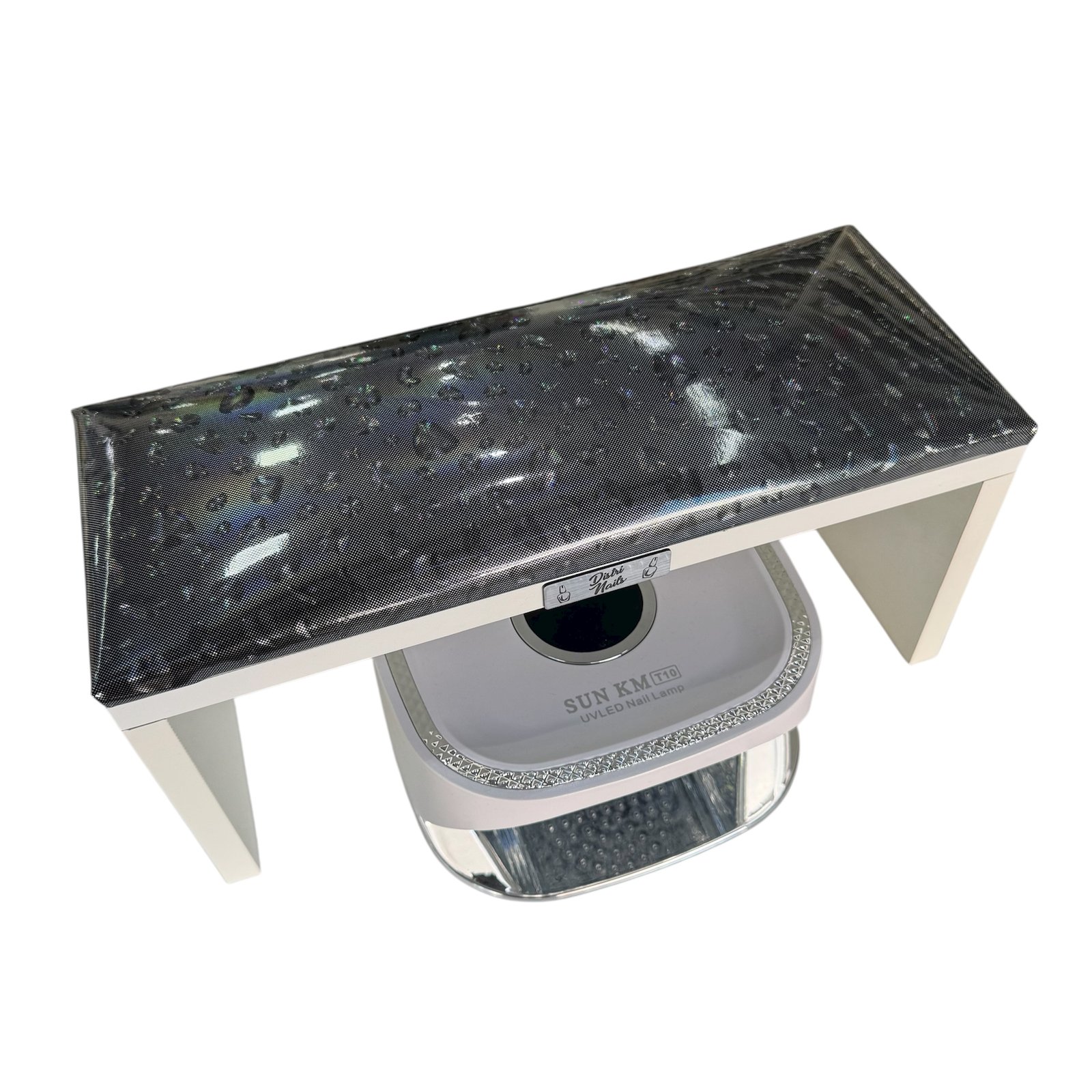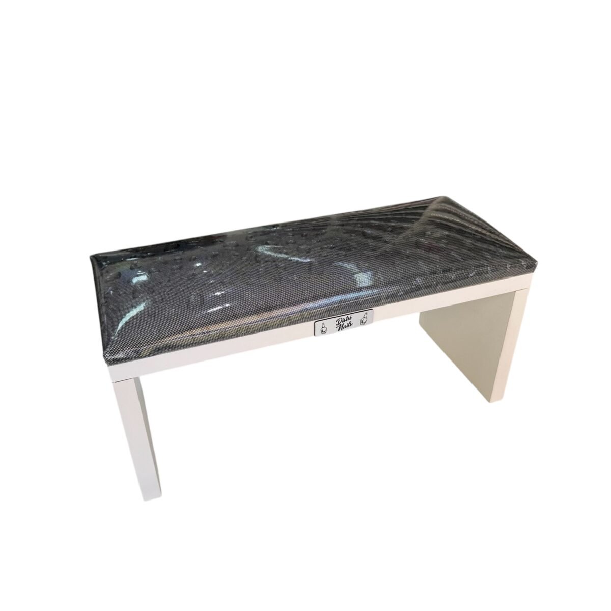 Apoya manos en color de madera mdf blanca con tapizado espejo burbuja negro.