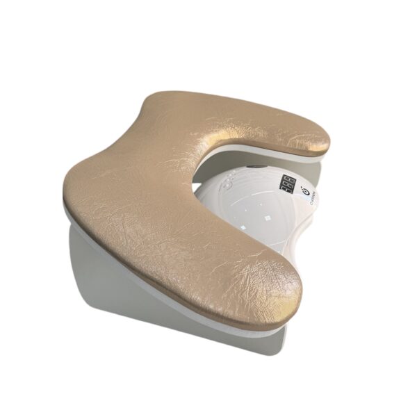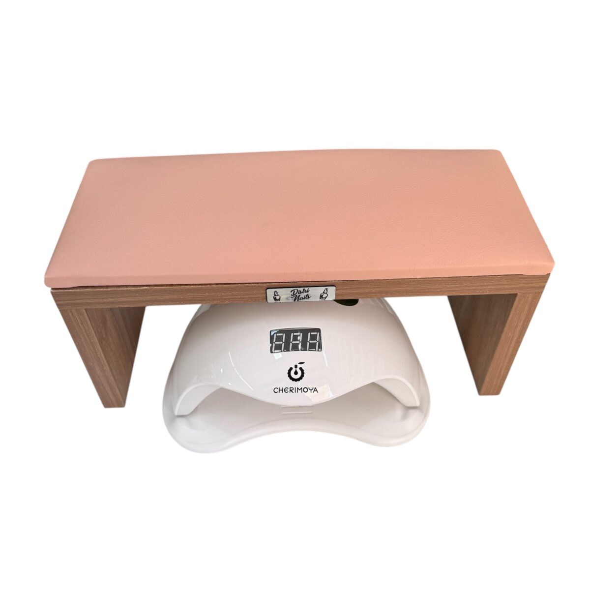 Apoya manos en color de madera mdf blanca con tapizado croco rosa.