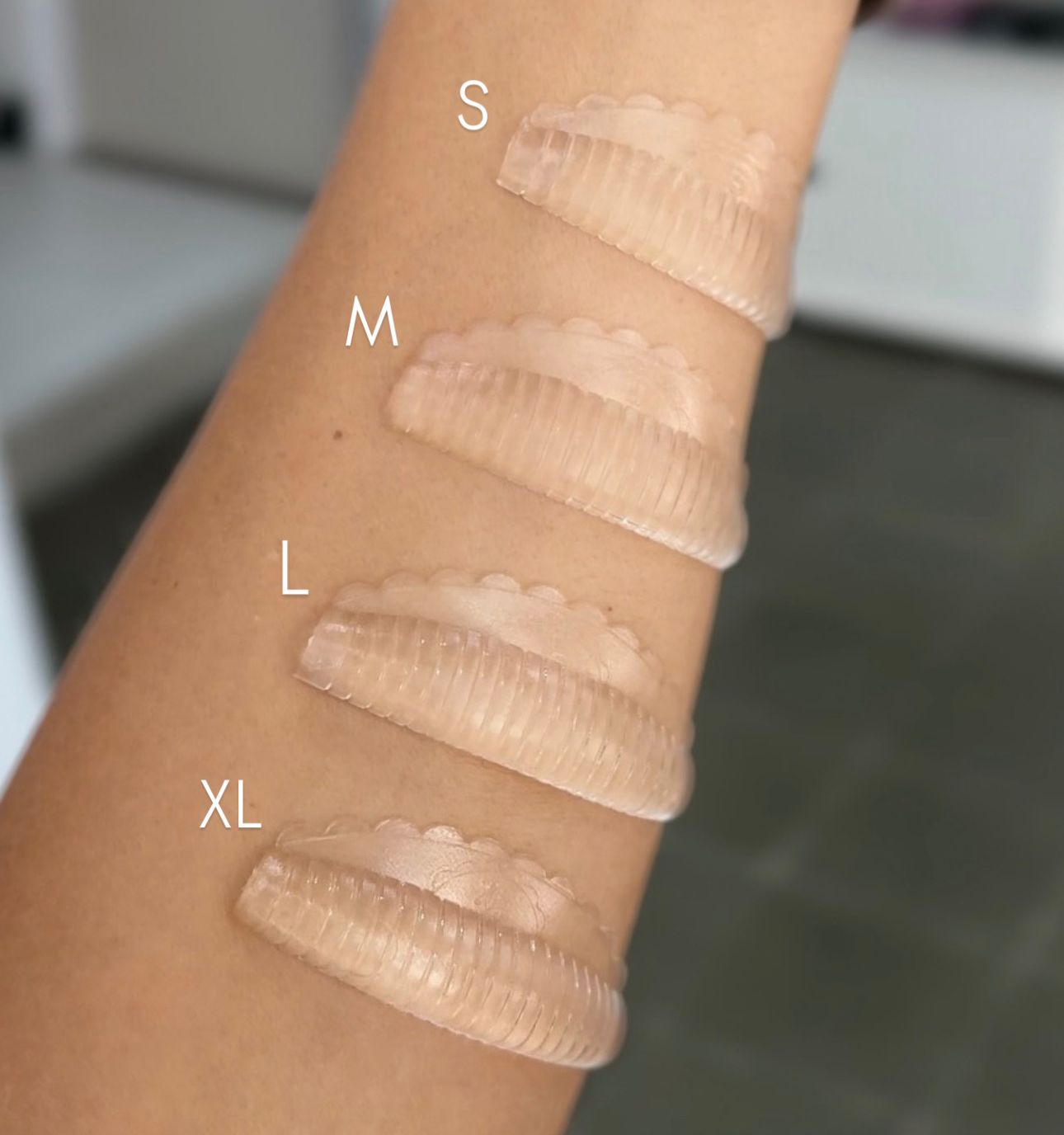 Bigudies de silicona AUTOADHESIVOS sirena x 4 pares (S, M L Y XL). No necesitan adhesivo para usarlos ya que por el tipo de silicona se adhiere directamente a la piel.