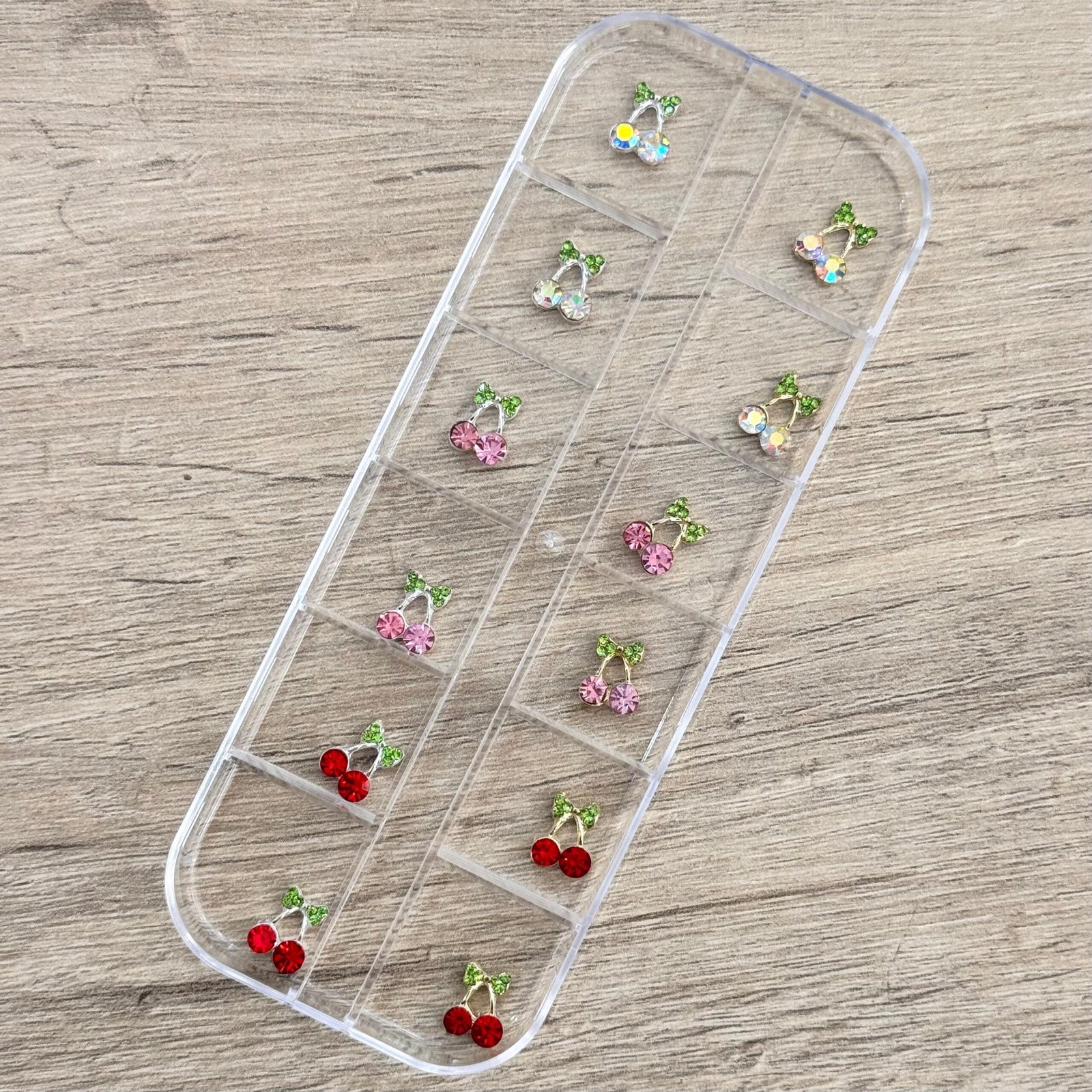 Caja dijes x 24 dijes cerezas plateadas y doradas