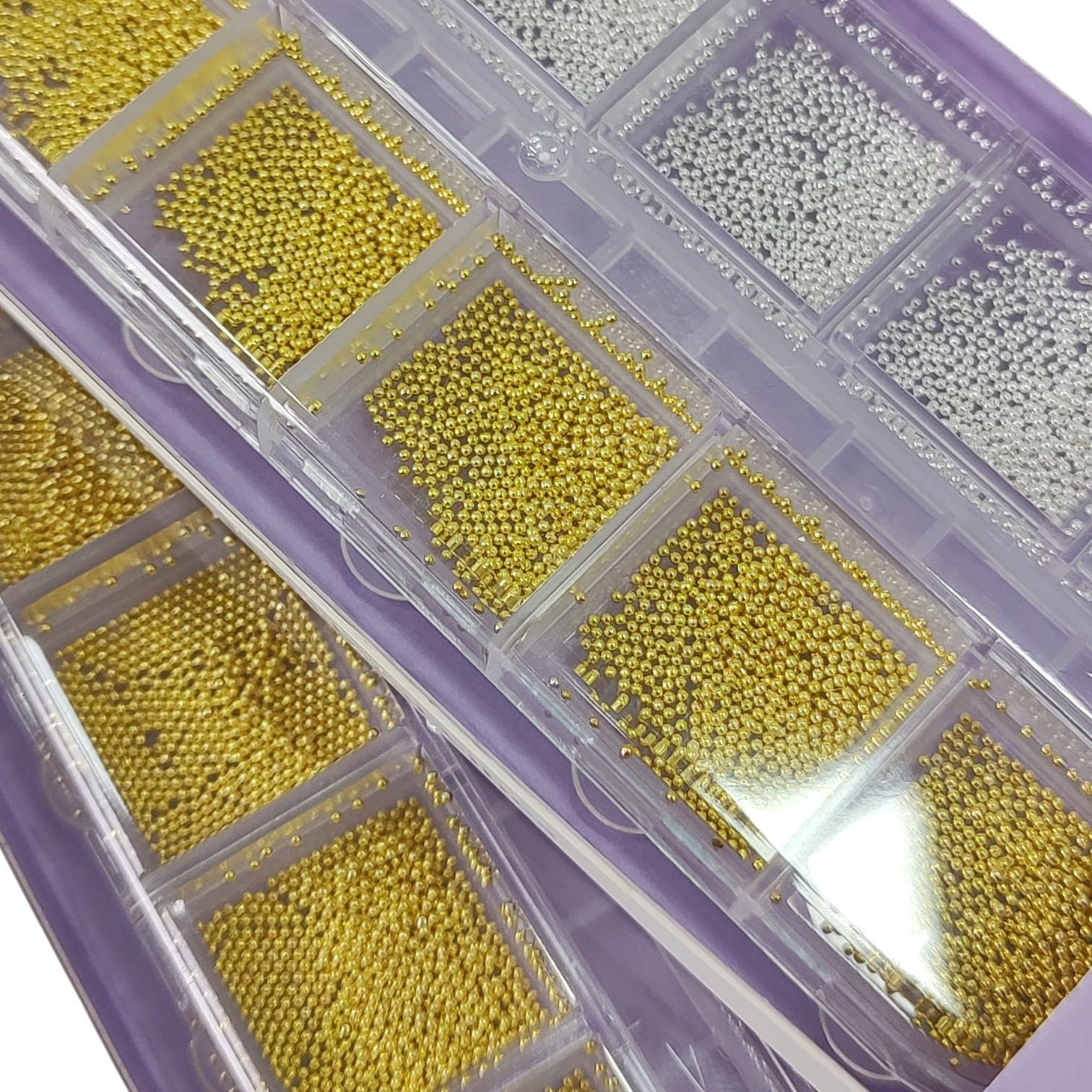 Caviar para uñas combinado plateado y dorado.