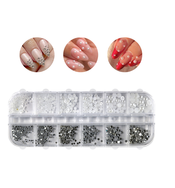Decoración de uñas en cajita x 12 media perla y strass – Cherimoya