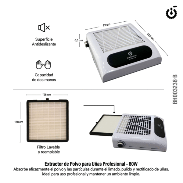 Este extractor es la herramienta esencial para mantener tu zona de trabajo , con un diseño moderno en color blanco y un tamaño que se adapta a todo tipo de ambiente y lugar.
