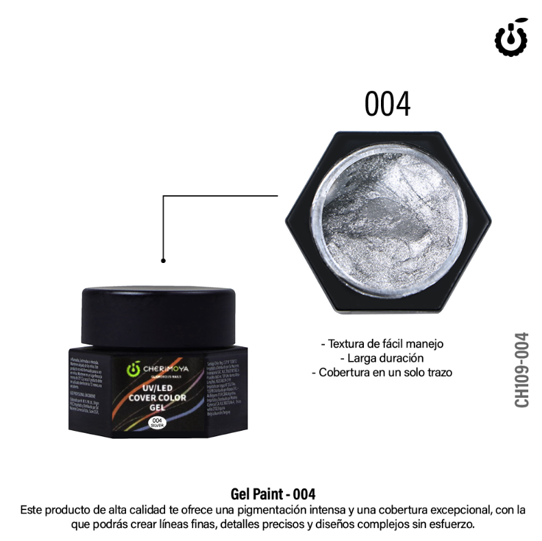 Gel paint plateado, color pigmentado, ideal para diseñar trazos de una sola vez.