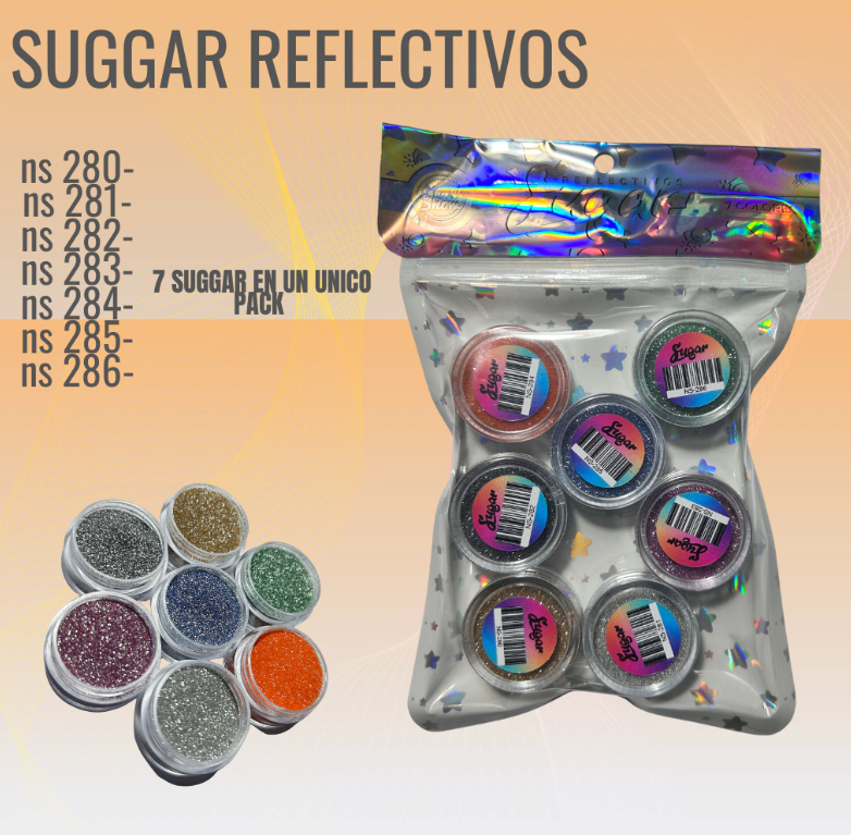 Dale un toque de brillo único a tus uñas con este set de Sugar. Ideal para decoración profesional o amateur, puedes aplicarlo fácilmente sobre el esmalte sin necesidad de top coat para un efecto intenso y llamativo.