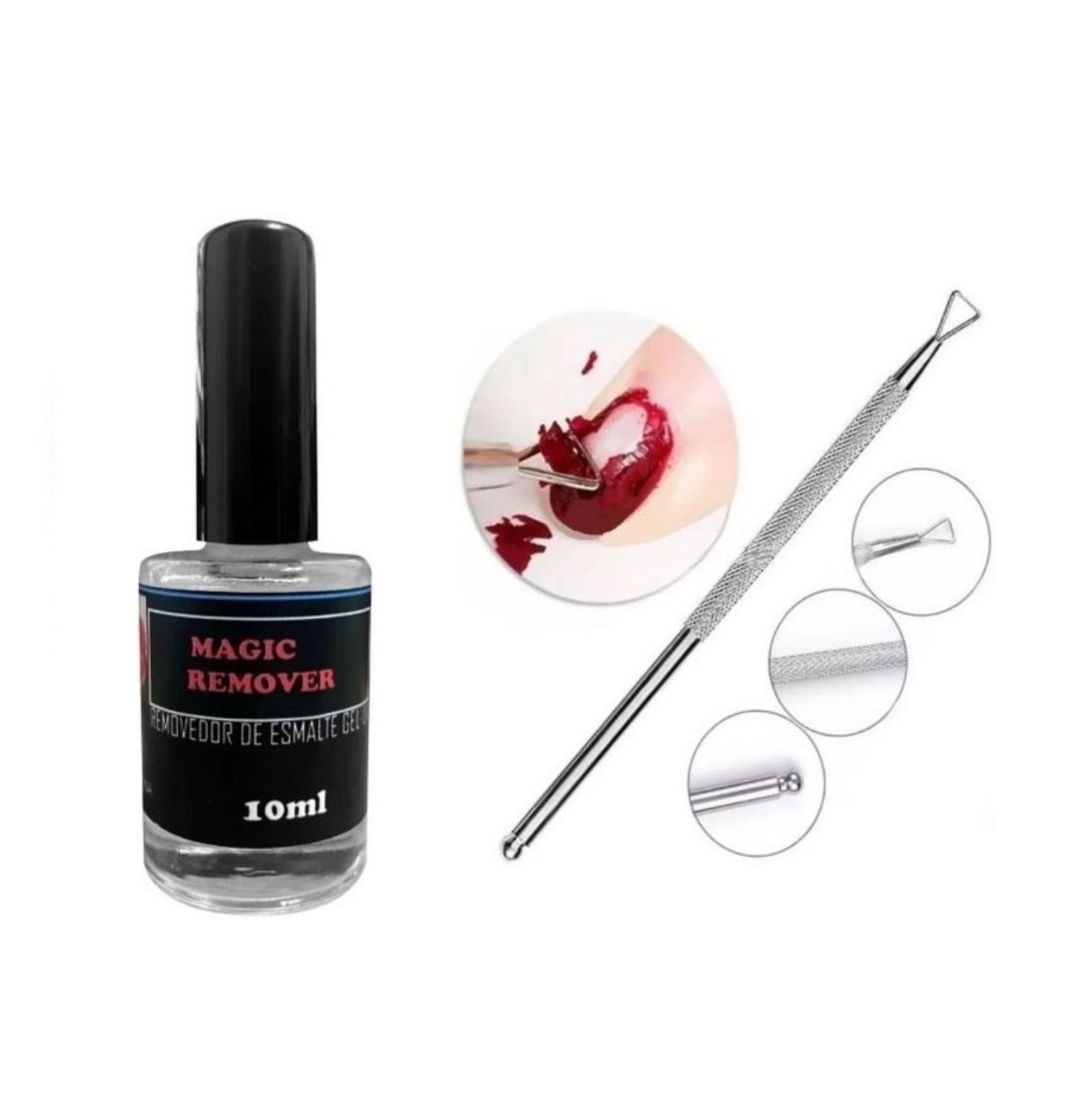Repujador de semipermanente para retirar el esmalte y quita cutículas.
