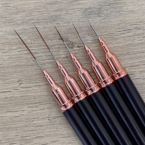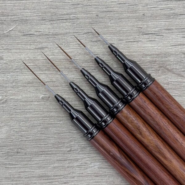 Pincel para acrílico con mango metálico labrado color rojo y plateado. Tapa desmontable.