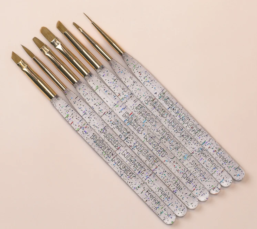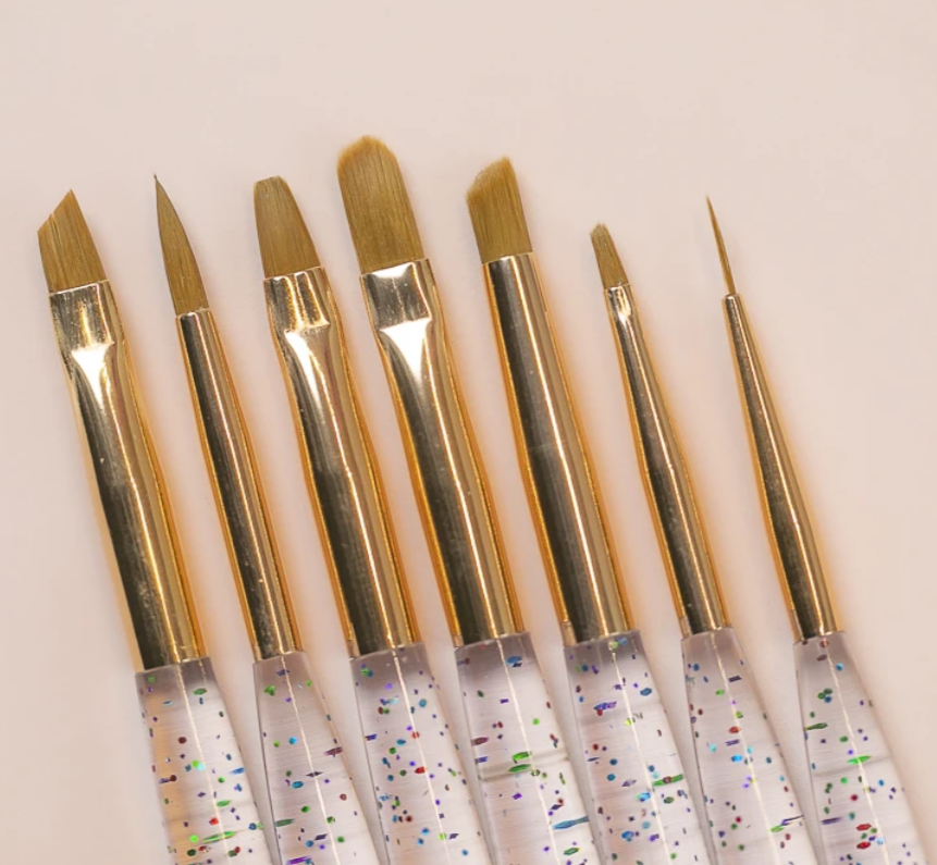 Set de pinceles con mango de acrílico con glitter.