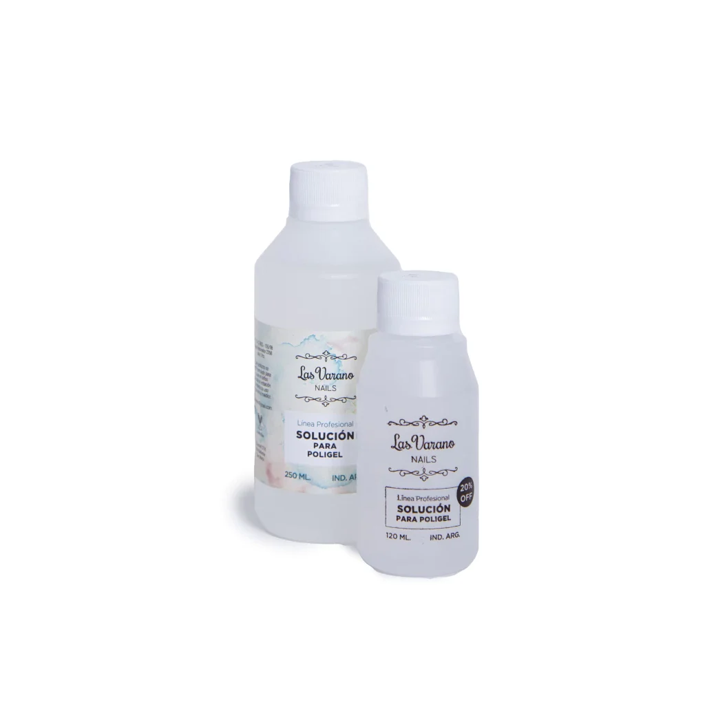 Colocamos la solución para poligel en un vaso dappen y con el pincel lo embebemos, retiramos excedente de líquido.