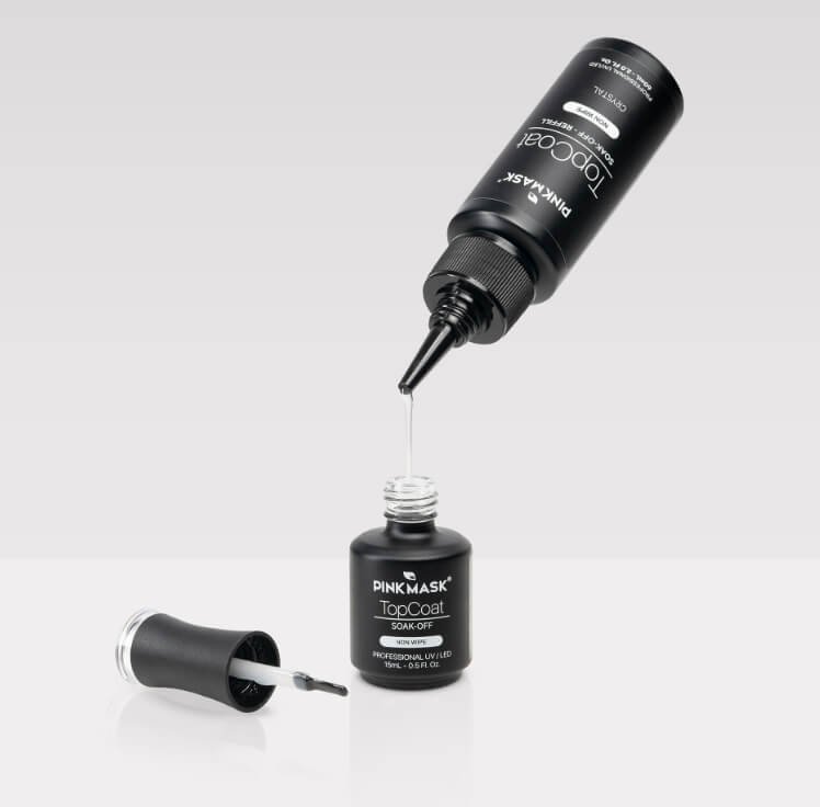 1. Una vez que los envases de tu Top Coat o Base Coat estén vacíos, limpiar el interior de los mismos con removedor. Una vez que esté seco/evaporado, proceder a rellenarlo con el contenido del Refill.